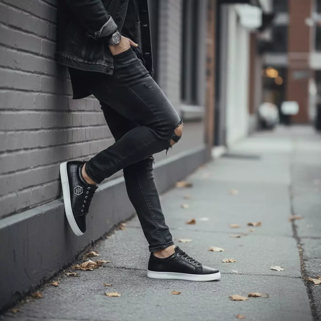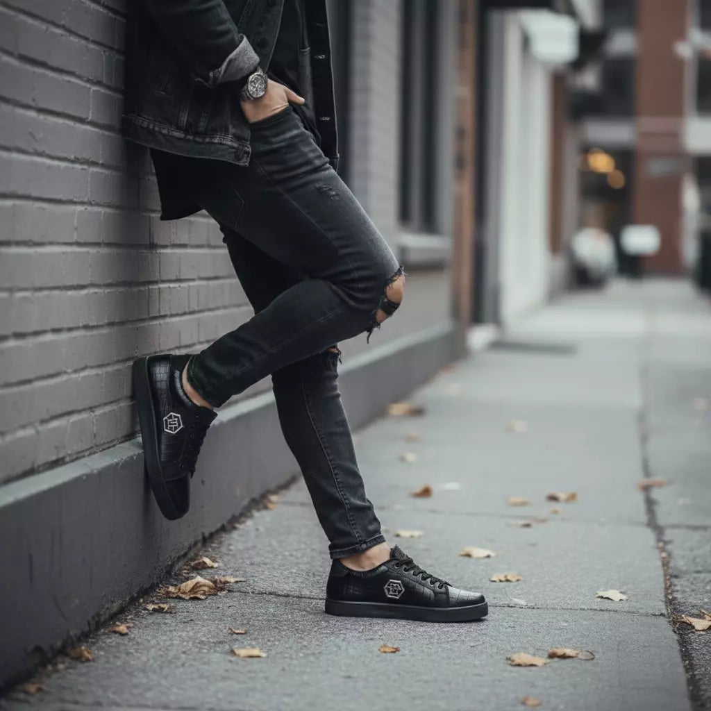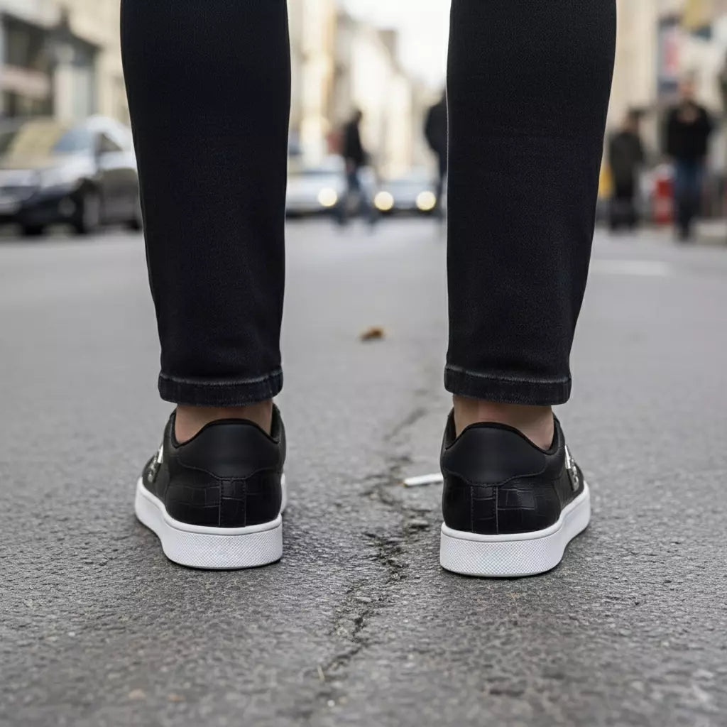 The Vellorn Lumea combines refined urban design with everyday comfort. Its monochrome black finish and textured upper deliver a premium look, while the lightweight, flexible build ensures a smooth and stable step throughout the day.