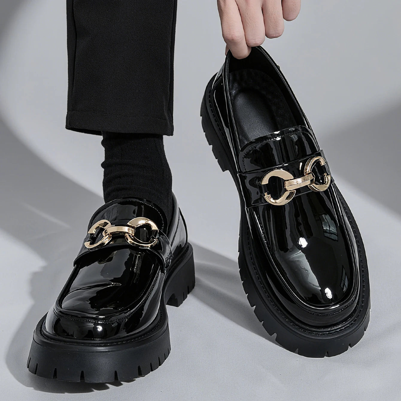 The Vellorn Luxen is a modern formal shoe designed to deliver elegance with strength. Its high-gloss patent finish and structured sole create a bold, refined look made for confident everyday wear.